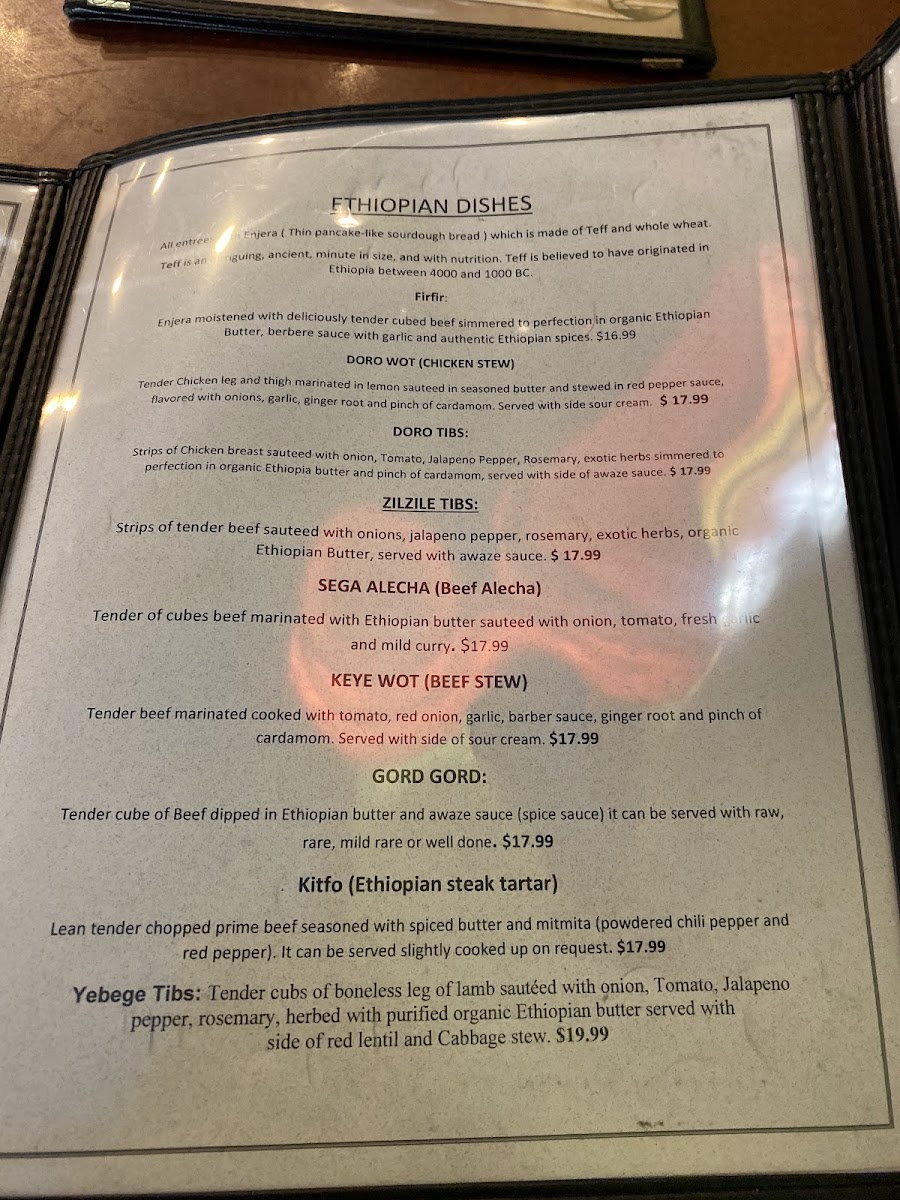 The menu features a variety of authentic Ethiopian dishes, showcasing an array of spices that excite the palate. Key highlights include:
